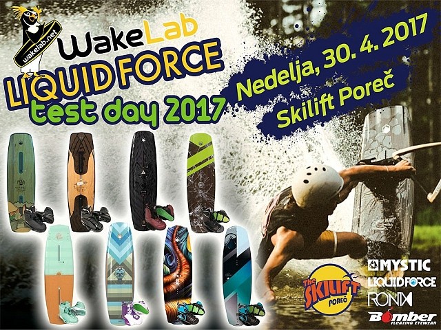 V nedeljo, 30. 4. 2017 Wake Lab Shop na Skiliftu Poreč organizira test desk in vezi znamke Liquid Force.